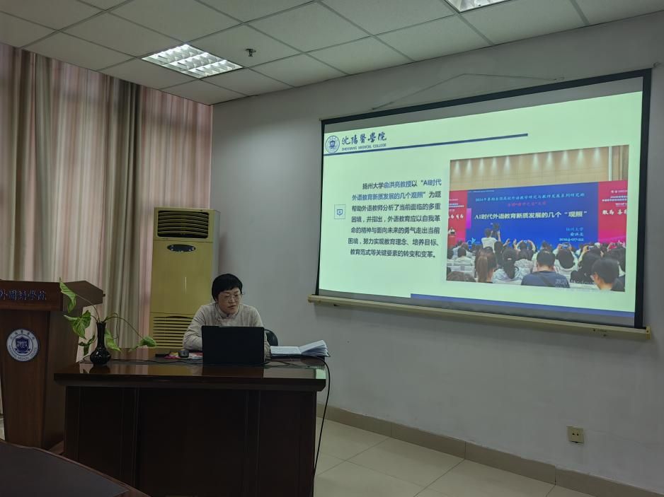 在对以上翻译软件有了一定直观认识基础上,张教授带着大家了解了目前人工智能结合大学英语教学的一些发展趋势与应用前景。张教授清楚阐释了人工智能对大学英语教师传统教学的困惑与应对措施,鼓励教师们积极适应数字化转型趋势,利用现代科技手段不断提升自己的数字技术能力,创新教学方法,取得更优质的教学效果。