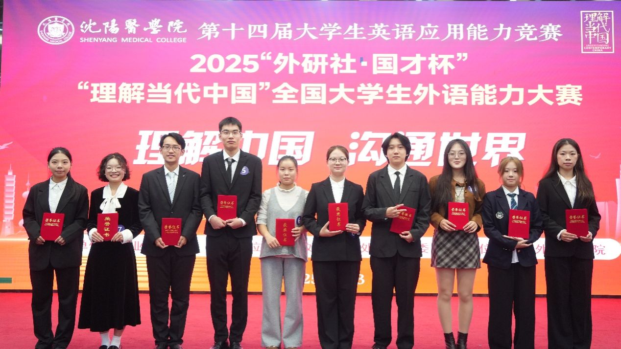 李继书记最后宣布了比赛成绩,朱晶老师指导的24级影像4班的白芯竹在10名选手中脱颖而出,夺得冠军,将代表公司参与2025年辽宁省大学外语能力大赛(英语组)演讲赛项的角逐。李新老师指导的24级口腔1班的叶畅、刘颖老师指导的23级麻醉2班的王涵以及王波老师指导的24级临床4班的庞家耀获得二等奖。其余进入决赛的选手获得三等奖。