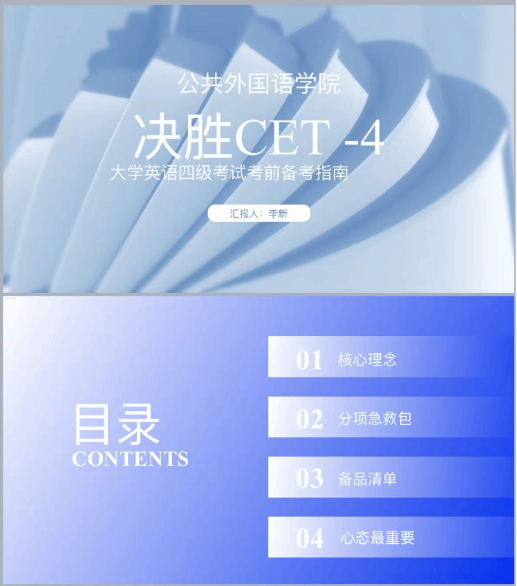 作为主讲人,李新老师紧扣考前一周的核心需求,以“精准发力,稳提分数”为核心思路,为学子们厘清备考重点。她先梳理四级考试流程及注意事项,帮学子提前熟悉考场节奏、规避细节失误。随后拆解写作听力阅读答题技巧,既详解四级写作评分标准,明确最后一周写作复习的核心方向;又点拨听力、阅读的应试技巧,搭配冲刺阶段的针对性复习方法。最后结合考前状态调整,给出实用的四级备考建议,让学子们的冲刺计划更清晰高效。