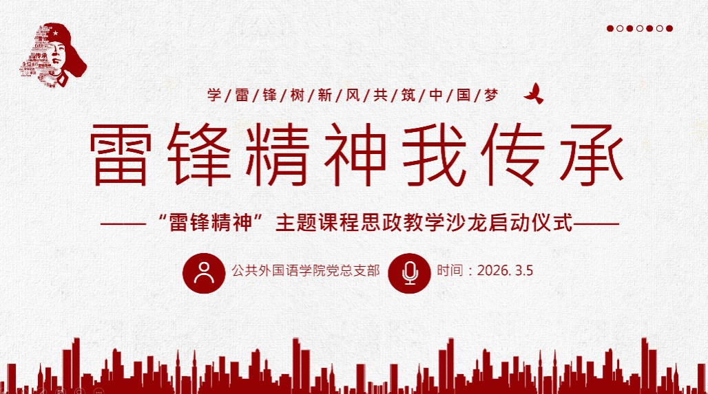 为深入传承雷锋精神,将思政教育与大学外语教学深度融合,落实立德树人根本任务,3月5日,公司党总支部隆重举行“雷锋精神”主题课程思政教学沙龙启动仪式。